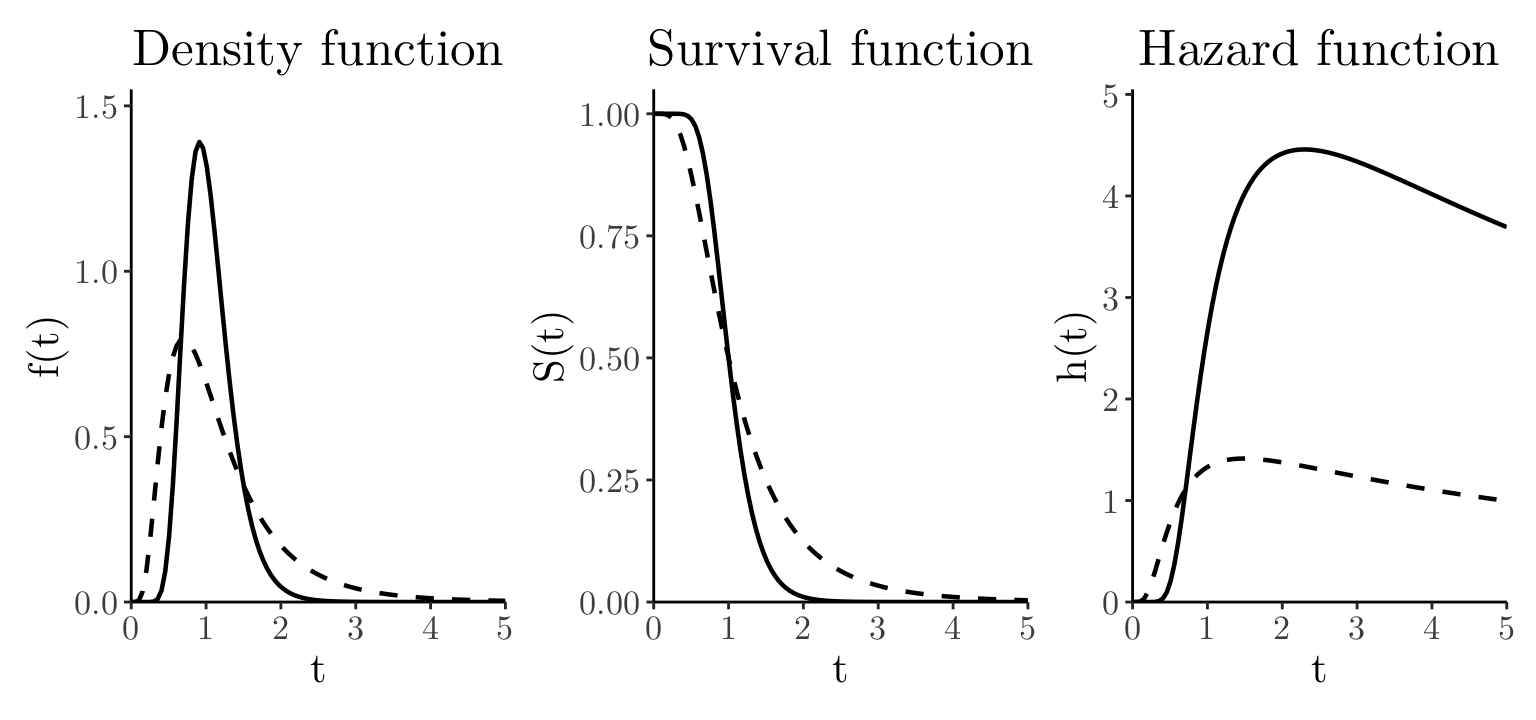 df_combined <- lapply(sigma_values, function(sigma) { data.frame(t = t_seq, sigma_factor = factor(paste0("sigma = ", sigma)), ft = dlnorm(t_seq, meanlog = mulog_scale, sdlog = sigma), St = 1 - plnorm(t_seq, meanlog = mulog_scale, sdlog = sigma), ht = dlnorm(t_seq, meanlog = mulog_scale, sdlog = sigma) / (1 - plnorm(t_seq, meanlog = mulog_scale, sdlog = sigma))) }) %>% bind_rows()