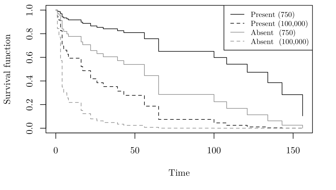 Commonly, when we observe (possibly censored) survival times \(t_1, \cdots ,t_n\), we also observe the values of \(k\) other variables, \(x_1, \cdots ,x_k\), for each of the \(n\) units of observation.