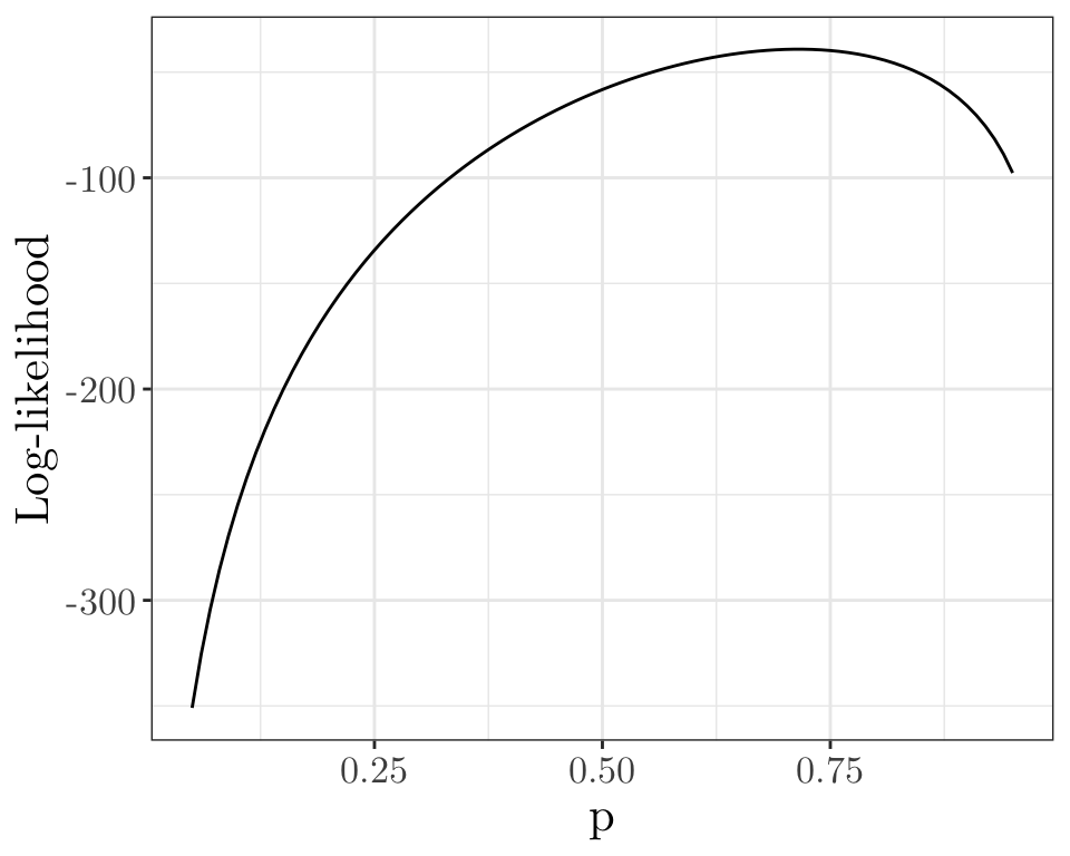 We are not really interested in the individual \(p_i\). Instead, we might be interested in modelling each \(p_i\) as a function of explanatory variables \({\mathbf x}_i\) (e.g. number of lectures person \(i\) attended, whether person \(i\) completed problem sheet 1, etc.).