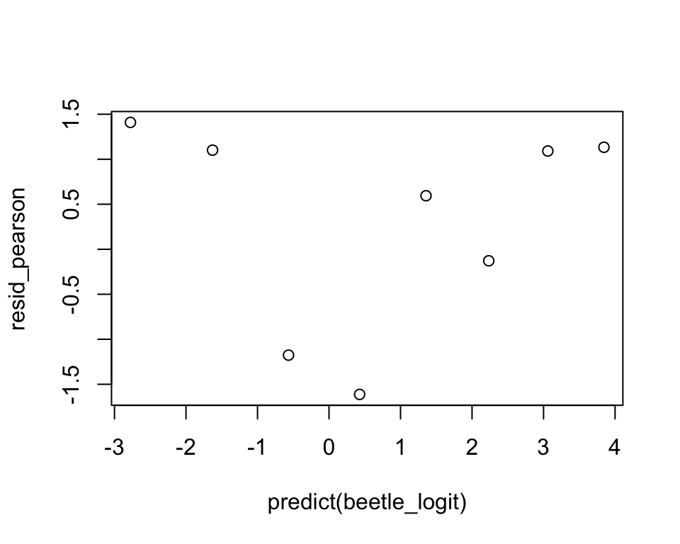 (resid_pearson <- residuals(beetle_logit, type = "pearson")) 1 2 3 4 5 6 7 8